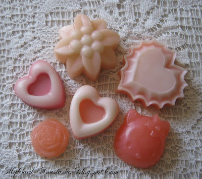 Статус: Offline | lese4ka81, здорово! Ооочень понравились сердце с розочками и груша - с такими красивущими переходами цветов! И пирожное просто прелесть! В общем все мылки - супер! :)