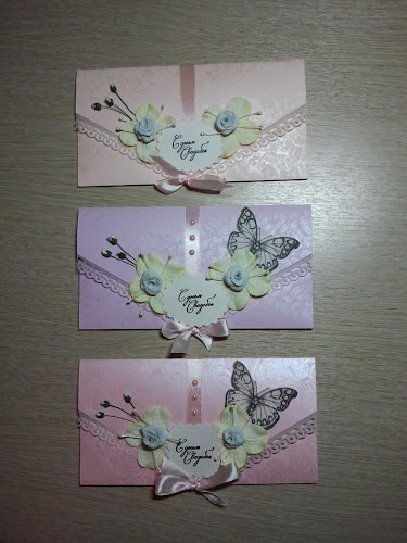 Статус: Offline | С розами конечно засада :) У меня бумажные цветы кончились, пришлось использовать самодельные лепные... какие нашлись.. и на конвертах поэтому желтые цветы вместо пастельных розовых - тоже все кончилось. Пора запасы пополнять.