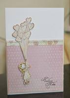 ну и поближе, штампик, один из немногих, я его везде тыкаю, с эмбосингом и висюлька, прикреплена на брадсик, который еще делает бантик из ленточки