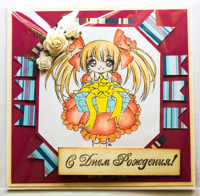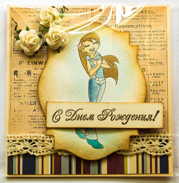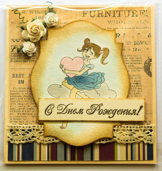 Статус: Offline | Моя новая открытка. Девочка - штамп по рисунку М.Федотовой, раскрашен дистресс маркерами.