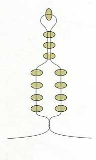 Количество бисерин в рядах: 1-2-2-3-3- (4х10 раз)-3-2-1